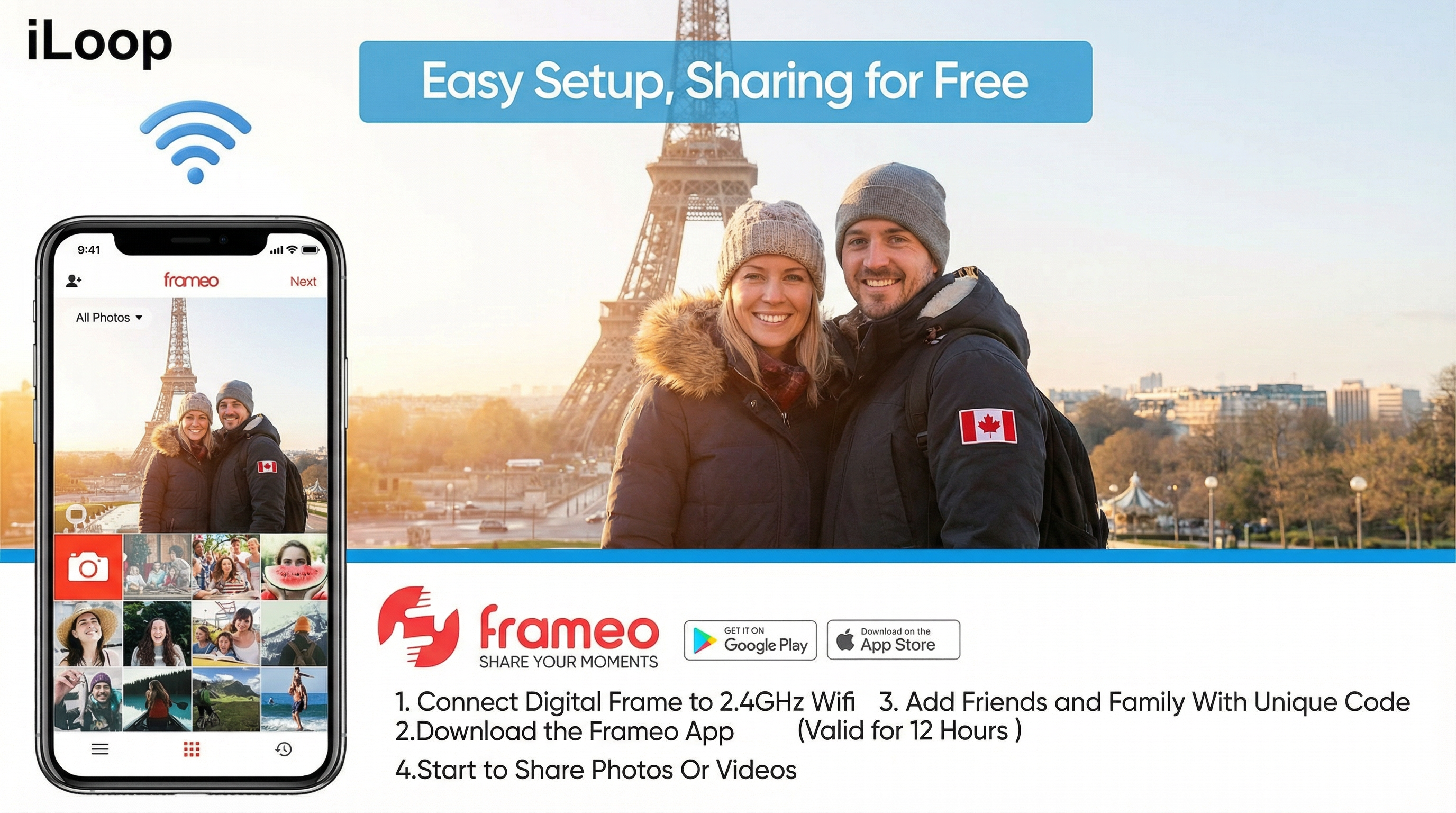 iLoop™ smart digital photo frames act as a real-time album for families. Whether it’s grandparents in Quebec or kids in Vancouver, loved ones can instantly upload photos through cloud sharing. The HD display and auto-rotation make every moment visible—coast to coast.
